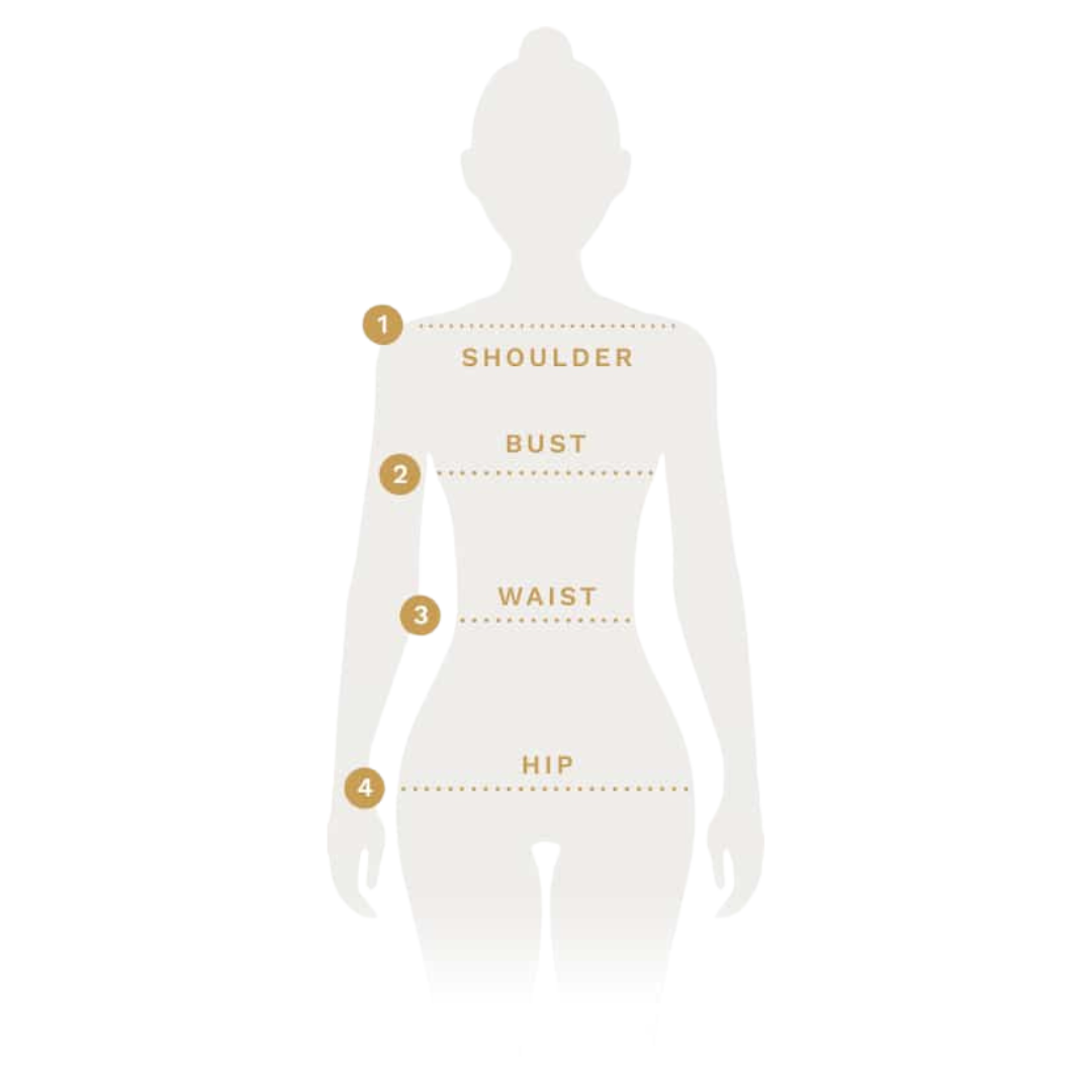 Please measure along the widest part of your hip and ensure you choose the size where your hip measurement is lesser than the hip garment measurement above.